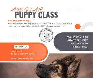 In Puppy Class we will cover all things puppy – behavior, learning, socialization, handling, crate and house training, nipping, manners, starting obedience, and more! This class is designed for canines between 14 wks – 1 yr and is a foundation to our higher-level classes. Must be UTD on age-appropriate Rabies, Distemper-Parvo, & Bordetella vaccines.